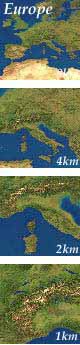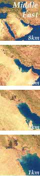 To view representative blocks of satellite imagery at 1 km, 4 km and 8 km resolution, Review Samples on the sample satellite imagery web page showing detailed area of the USA / West Coast, Europe / Italy, South America / Chile, and the Persian Gulf / Middle East. In addition to the 1 kilometer satellite imagery, we also offer a range of very high resolution sources running from as detailed as 2 meter, thru 10, 15, 20 and 30 meter, 160 and 250 meter from various remote sensing sources. Check out the Hi-Res Satellite sample images on our Earth Observation Data Sources page.